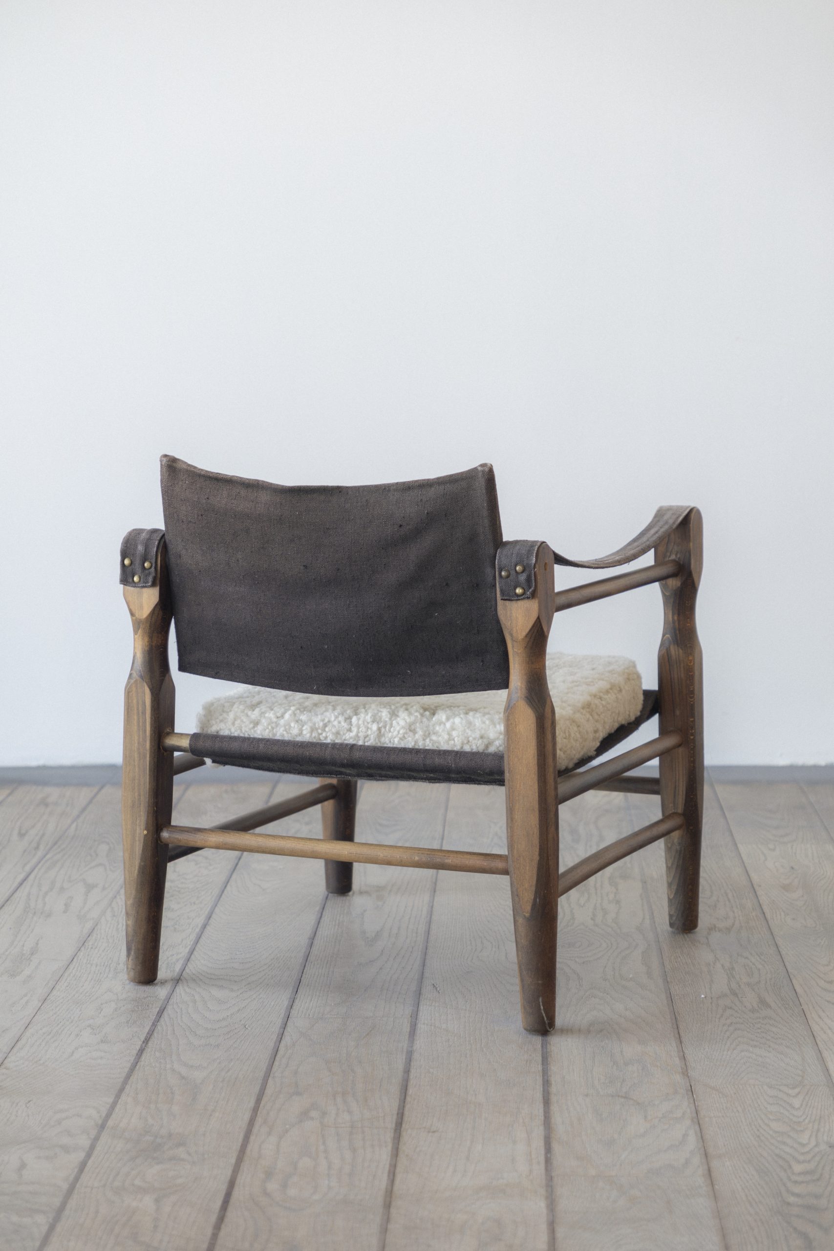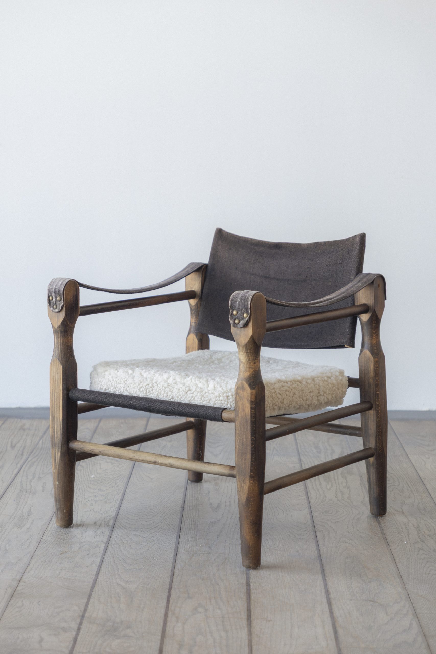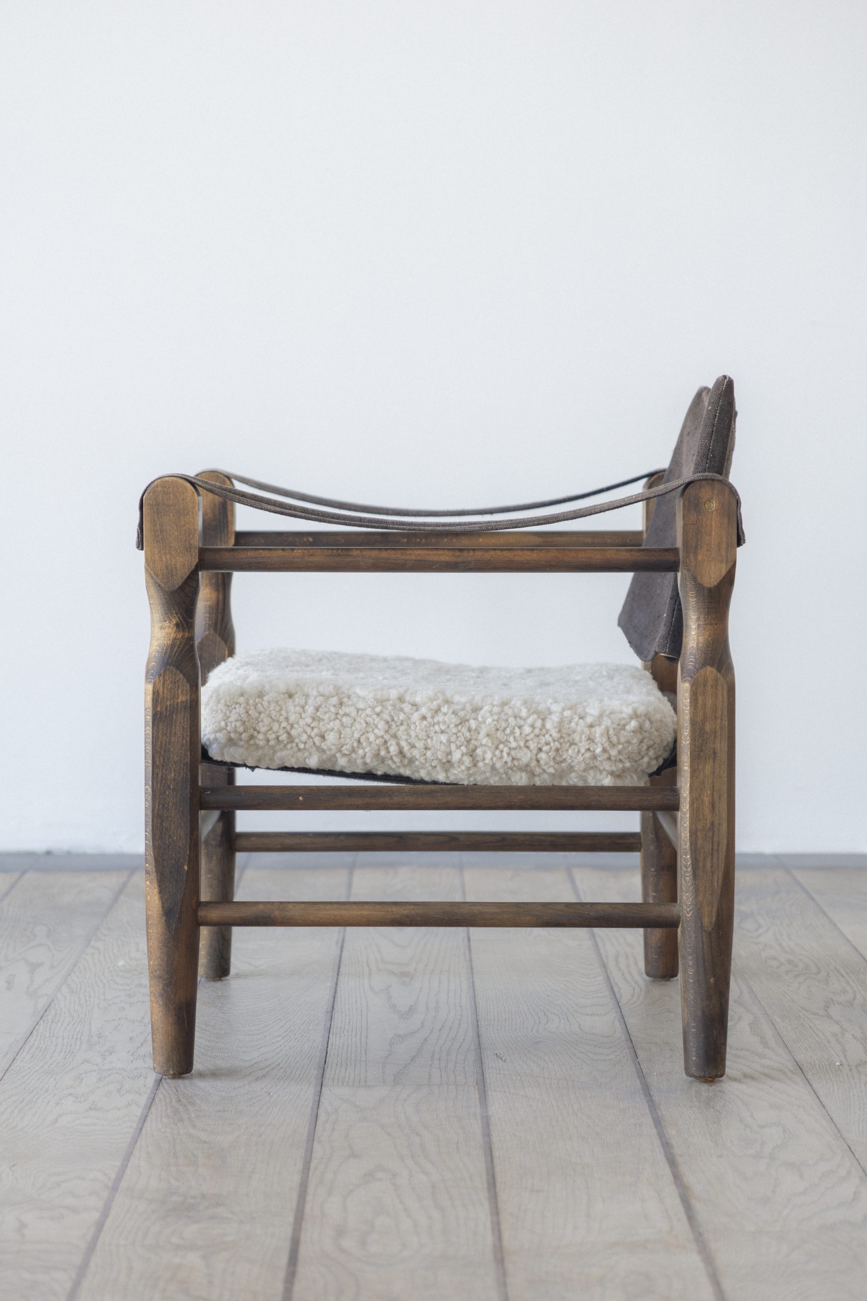 Wear consistent with age and use. Reupholstered cushions in sheepskin